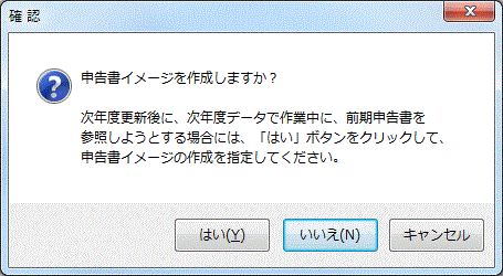 「はい」ボタンをクリックすると、次年度更新処理の本処理前に、当期の申告書イメージの作成
