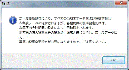 [次年度更新]を選択すると、下記の確認ダイアログが表示されます。