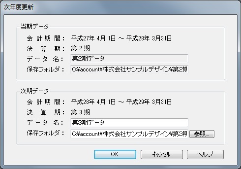 次年度更新処理を実行して、翌期の会計データを作成します。