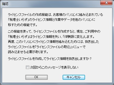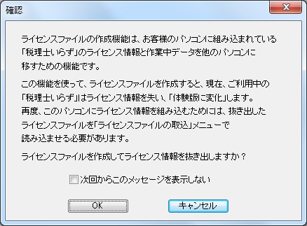 「税理士いらず」を動作させるパソコンを変更するために製品版の[ライセンスファイルを作成]