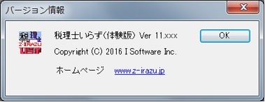 (3)ライセンスファイル保存後、[ヘルプ->バージョン情報]を確認すると、「体験版」