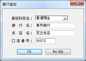 「OK」ボタンをクリックすると、入力した銀行の情報を登録し、この画面を終了します。
