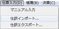 1.「伝票入力」メニューの「仕訳インポート」を選択します。
