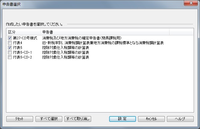 2.申告書選択ダイアログが表示されます。