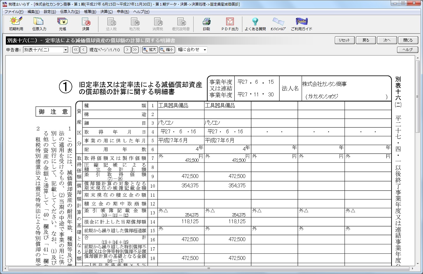 ここで確認された別表十六の当期償却額は、確定決算書の減価償却費として計上されますので、