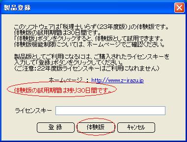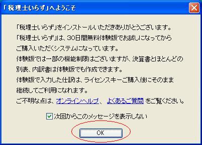 このダイアログに表示されている「税理士いらず(XX年度版)」という表記を