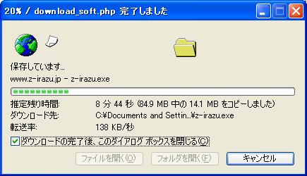 体験版ファイル(z-irazu.exe)が、ホームページからパソコンにダウンロード