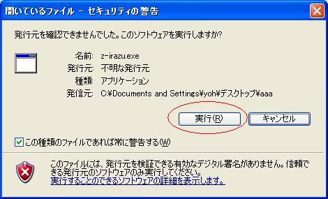 ダウンロードファイルは、十分にチェック済みですので、「セキュリティ警告」は