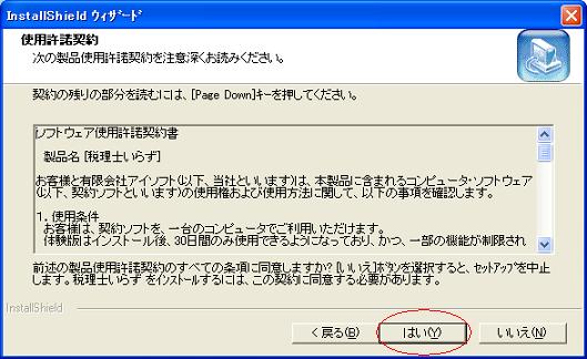 「使用許諾契約」を確認して、「はい」ボタンをクリックしてください。